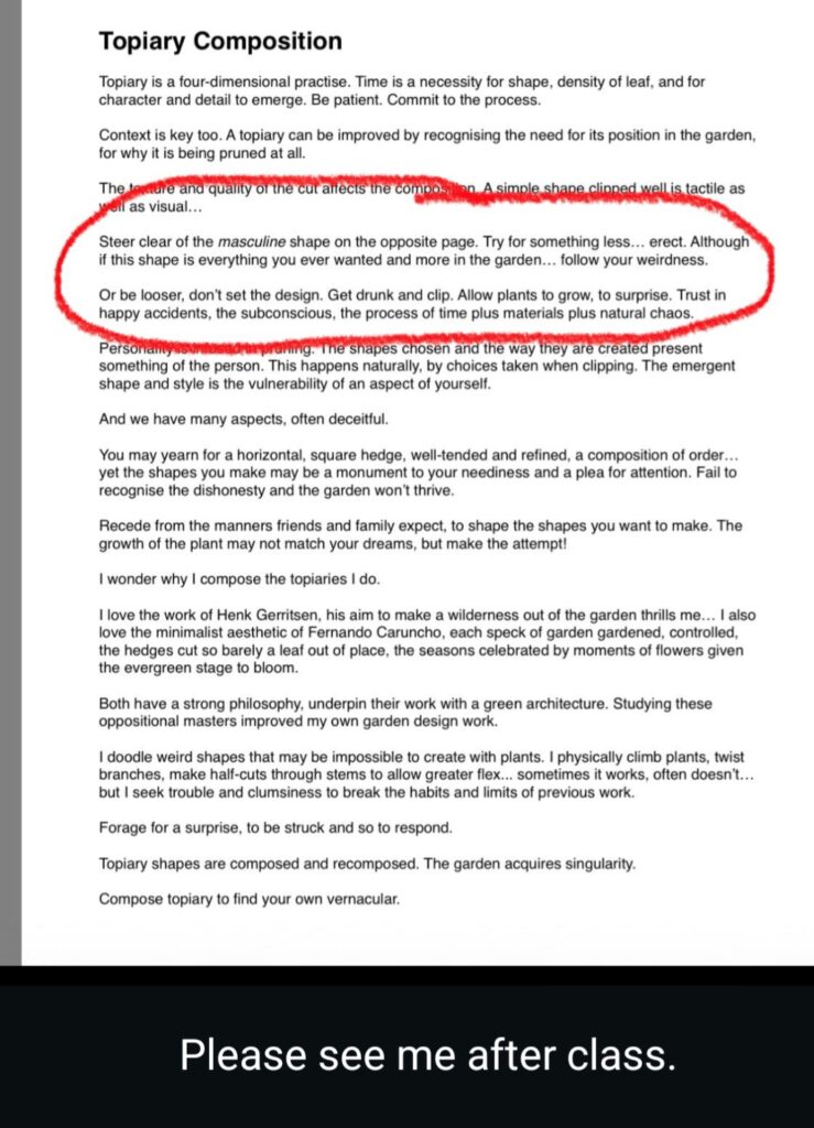 Over the last six years I have been writing a book. It is called Modern Topiary and I have finally finished it, and now made it available for people to read. This is the blurb on the back…. This is the topiary book I wish I had when I began trying to clip plants into a shape others would consider beautiful. Split into two parts – the craft and then the art of topiary – I have tried to share everything I know. It’s not a long book. I hope this gives you the foundation for good technique, alongside ideas …